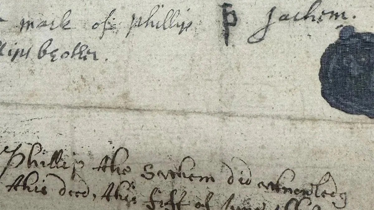 This is the only known written record, in his own hand, of Metacom, or Philip, Wampanoag sachem who led Indigenous resistance. Philip, sachem of the Wampanoag. Quitclaim by Philip, Rehoboth, MA. From the collections of the John Carter Brown Library.