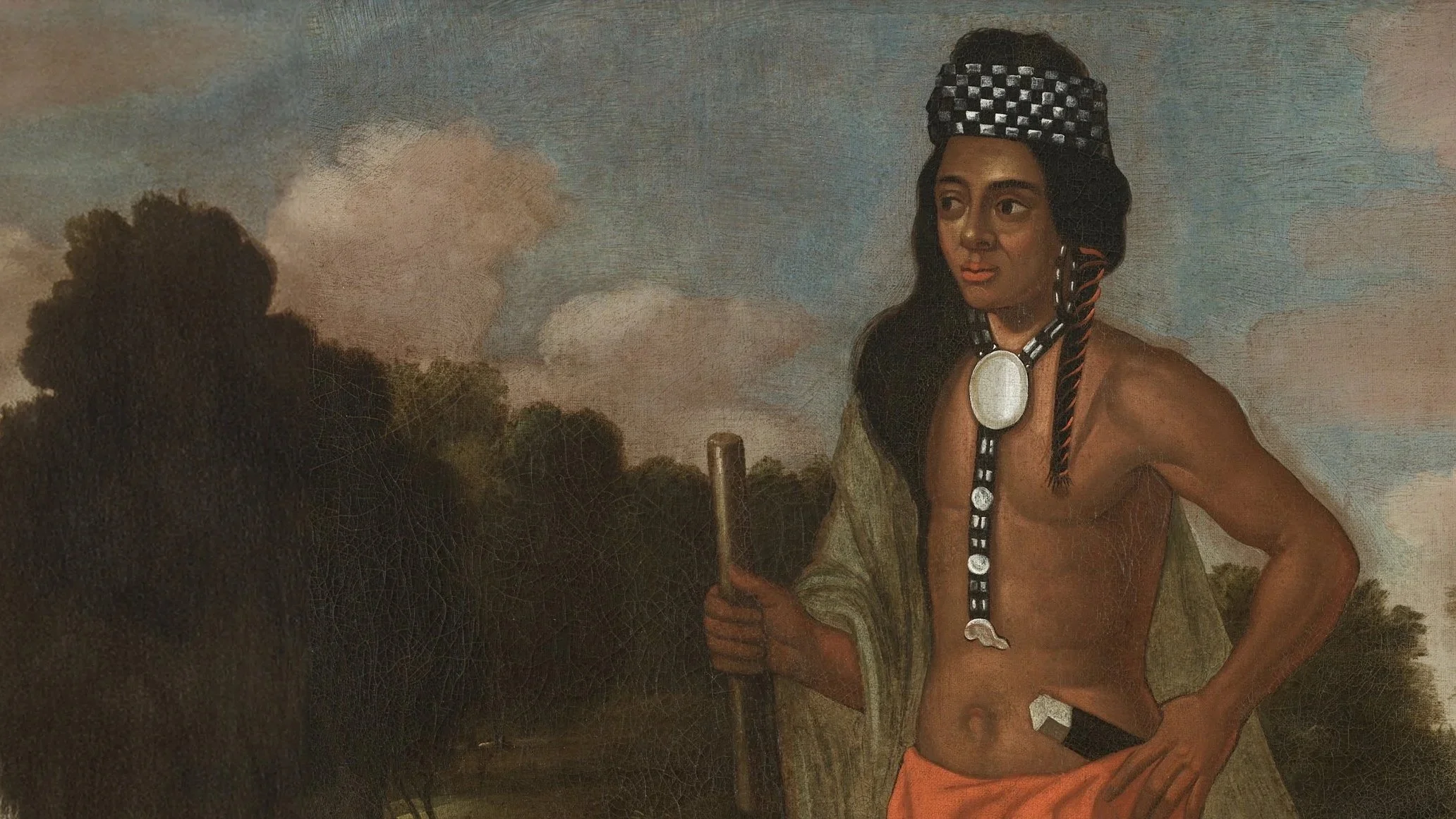 Indigenous enslavement in New England began with the Pequot War of 1636-37, when the Puritans enslaved thousands of captives in New England or sold them into slavery in the Caribbean. This portrait, long thought to be of Niantic leader Ninigret II, portrays Robin Cassacinamon, an important Pequot leader. Native American Sachem, accession number 48.246, courtesy of RISD/public domain.
