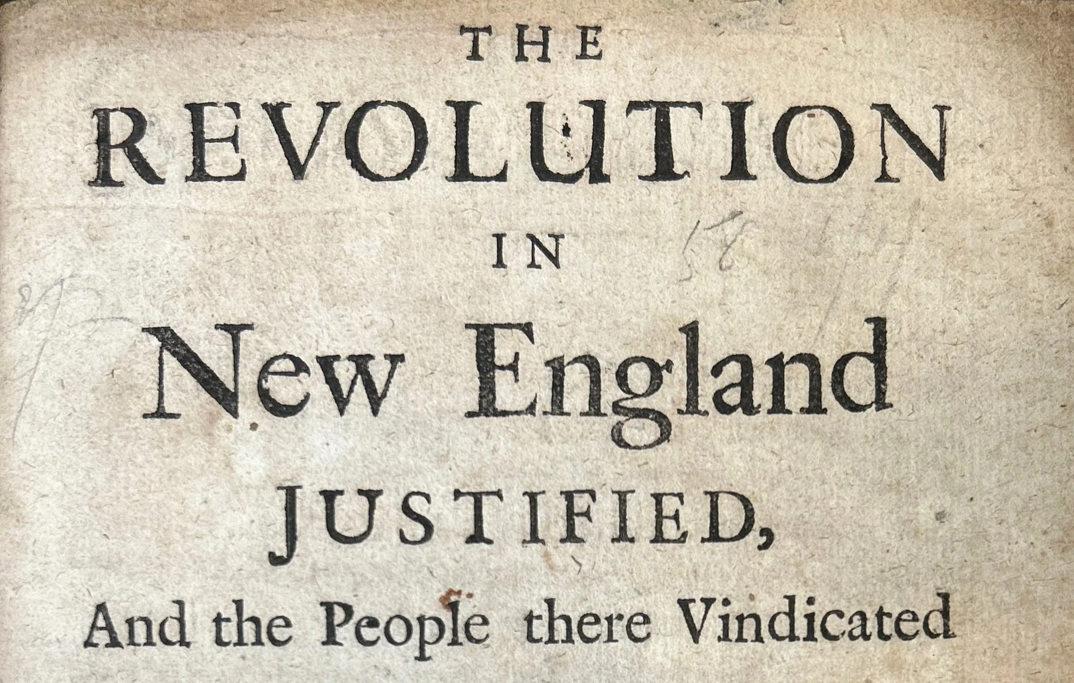 The title says it all: Edward Rawson’s defence of Boston’s defiance of the monarch on the eve of the Glorious Revolution in his Revolution in New England Justified (Boston: 1691). Popular uprisings, protests against taxation without representation, a royal governor imprisoned… long before 1776, New England rejected royal rule.